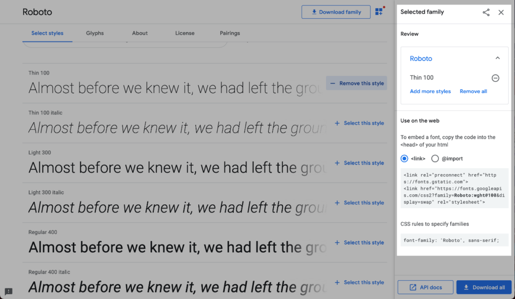 Etiketi Kullanarak: Google Fonts’tan bir font seçtiğinizde size bir<link>