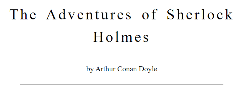 Örnek olarak, Arthur Conan Doyle tarafından yazılan The Adventures of Sherlock Holmes kitabının HTML sürümünün aşağıdaki kısmını oluşturalım.