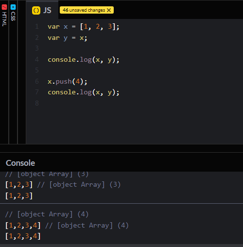 Yukarıdaki örnekte de görüleceği üzere y değeri başlangıçta x’in sahip olduğu değere eşitlenmiştir. Ancak bu eşitlenme ile a’nın bellekteki yerini kopyaladığı için x’in değeri sonradan değiştiğinde y’nin değeri de değişmiştir. Peki neden böyle oluyor?